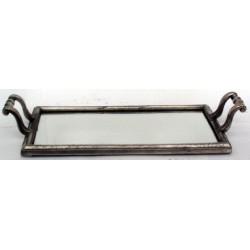 Pewter tray with fleur-de-lis decor and mirror bottom 6012L