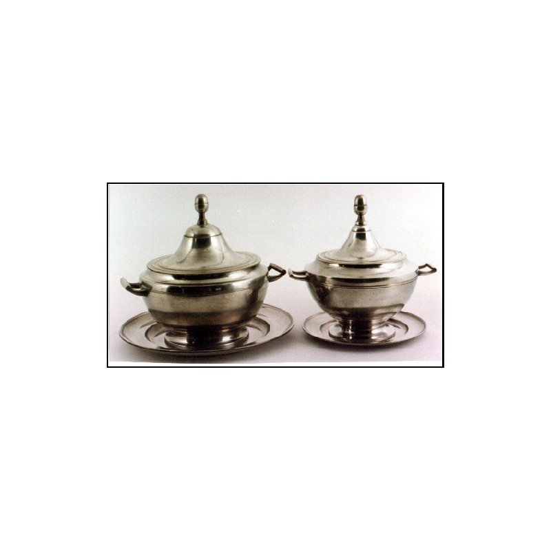 Cette soupière est réalisée en alliage d'étain garanti sans plomb et titré à 95% d'étain pur minimum.